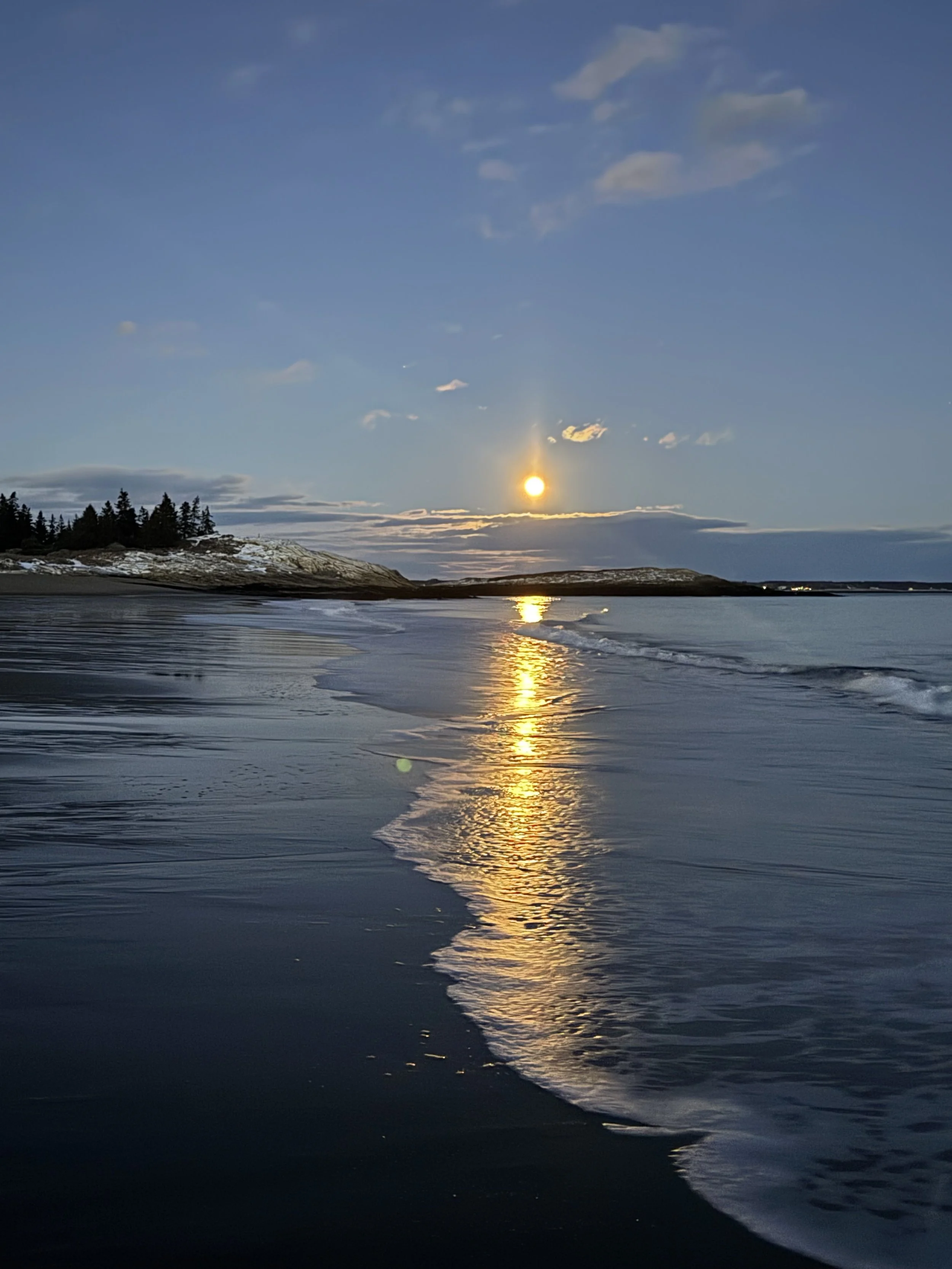 My New Year’s Resolution to enjoy every full moon of the year in a celebratory way. January’s Wolf Supermoon set the bar high, with a trip to midcoast Maine. I stayed overnight in a cozy treehouse, and watched the brilliant moonrise over the ocean at Reid State Park. While some ideas are swirling in my head, I don’t have a set plan for the next 12 full moons of the year. If you have ideas on great ways to celebrate a full moon, drop them in the comments below!